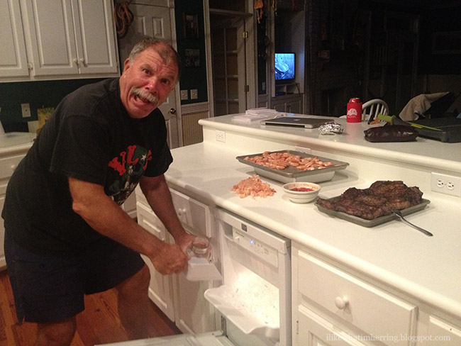 Dad asked what we wanted for dinner on Saturday. He has steak and shrimp. Do yall want both?!? he asked.